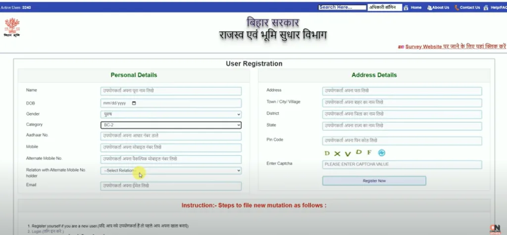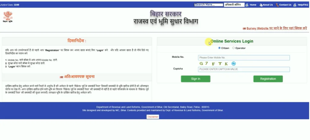 पोर्टल का संचालन | बिहार सरकार का राजस्व एवं भूमि सुधार विभाग |